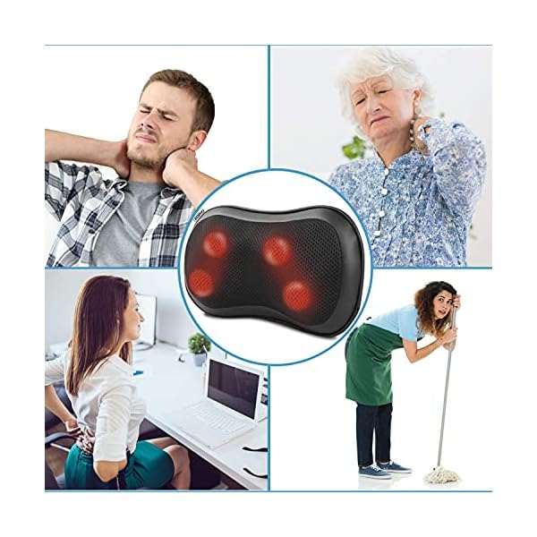 Shiatsu Back and Neck Massager: With 4 powerful deep kneading 3D massage nodes and reinforced heating function, this heated shiatsu pillow massager helps to relax overused and tight muscles. This massager with heat effortlessly kneads your knots away and bring you real comfort and relief. Please hold the power button 3 seconds to turn on the massager